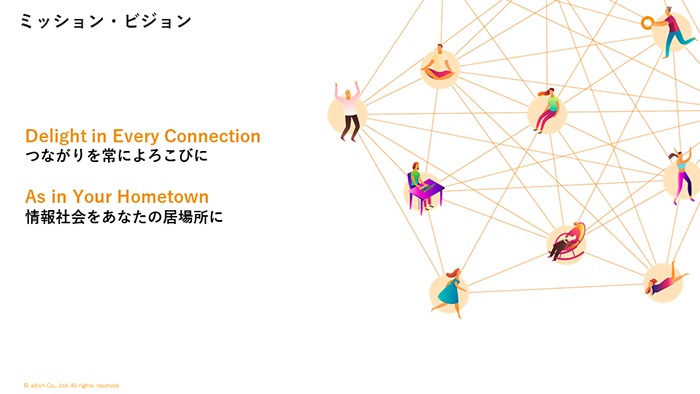 同社はミッション「つながりを常によろこびに」、ビジョン「情報社会をあなたの居場所に」を掲げ、デジタルエコノミーに特化したカスタマーサクセスソリューション・プロバイダーとして事業を運営。