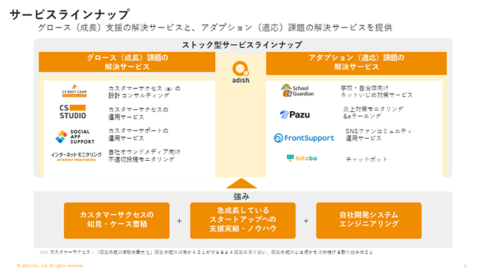 アダプション支援サービスはテクノロジーの発展に伴い発生する課題を解決する事業で、会社設立時から伸ばしてきました。