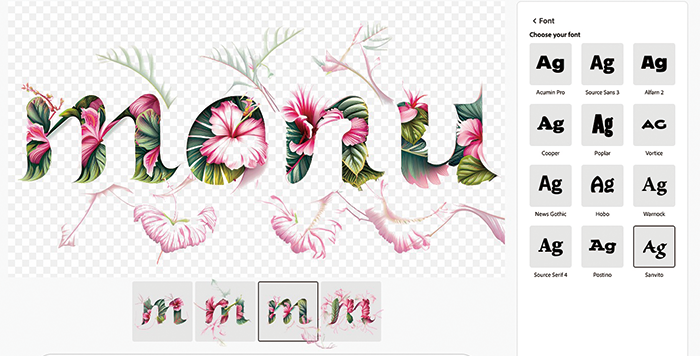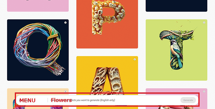 今回は、例として「MENU」という文字を「花(Flowers)」エフェクトで作成します。