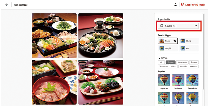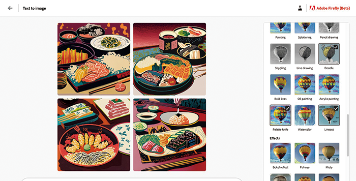 ここからは現時点のAdobe Fireflyベータ版でできることや使ってみた所感を紹介します。