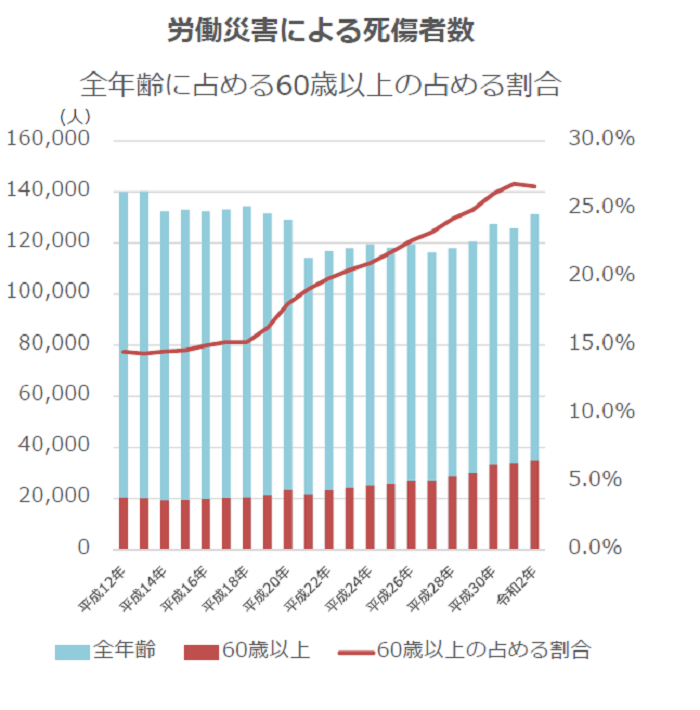 労働市場における高齢者の役割は高まっていますが、高齢者は労災事故の発生率が高いため、企業には高齢者が安心して働ける職場環境づくりが求められています。