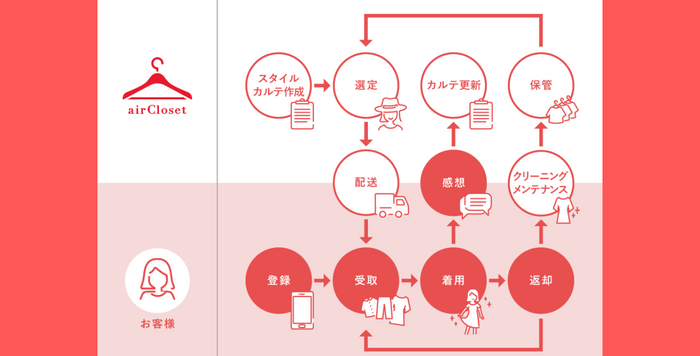 プロのスタイリストがコーディネートした洋服を月額制で借りられる女性向けファッションレンタルサービス「airCloset(エアークローゼット)」。2014年に創業後、約7年間で会員登録者数80万人超まで成長しました。2022年7月には東証グロース市場に新規上場。