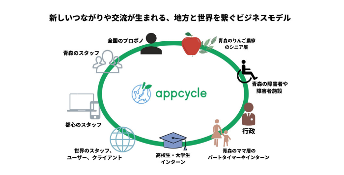 appcycleは、フードロス問題や地方創生にスポットを当て、規格外などを理由に廃棄されてしまうりんごを使い、国内初となる「りんごを使用したヴィーガンレザー」を開発。自身の出身地である青森から世界に向けて販売していくため、青森、東京、シンガポールの3拠点で事業をスタートさせました。