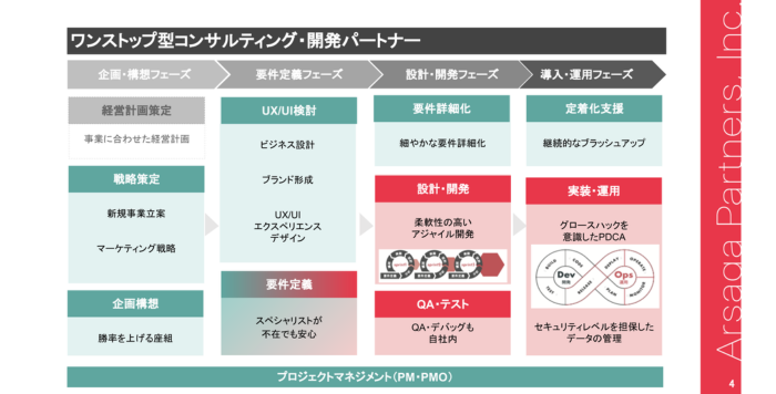 現在、コンサルティングからIT開発までをワンストップで支援するDX一貫サポート事業を展開。