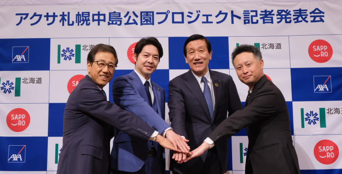 2025年竣工の「アクサ札幌中島公園プロジェクト」記者発表会(2023年5月)*札幌本社は竣工時に新ビルに移転します