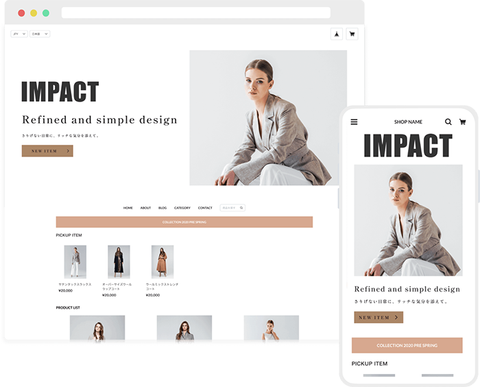 商品画像の表示を大きくしたり、動画を埋め込んだりと、デザインテンプレートをカスタマイズすることで、より魅力が伝わるページを作ることができます。