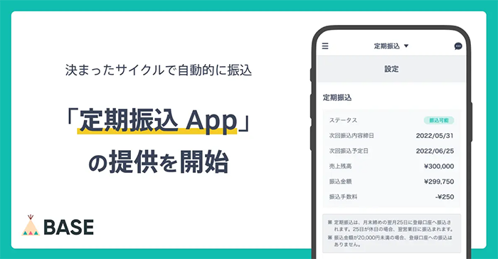定期振込App」を利用している場合には、振込申請が不要で翌月の25日に銀行口座に自動で売り上げが振込まれます。