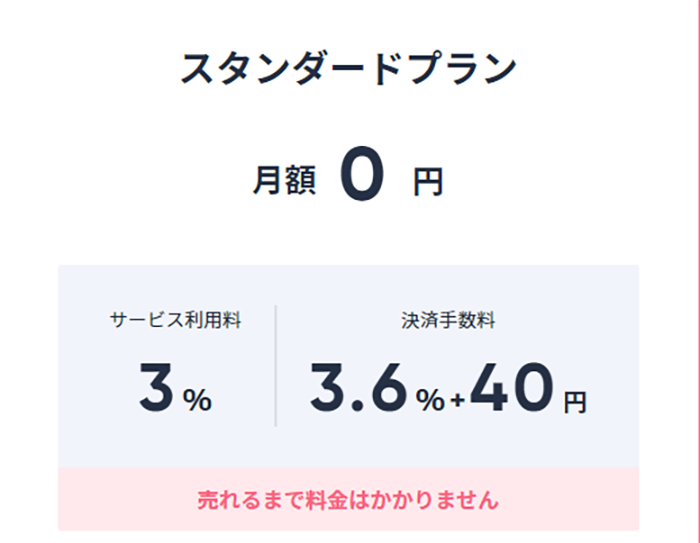 スタンダードプラン月額0円で、サービス利用料が3%、決済手数料が3.6%と40円です。