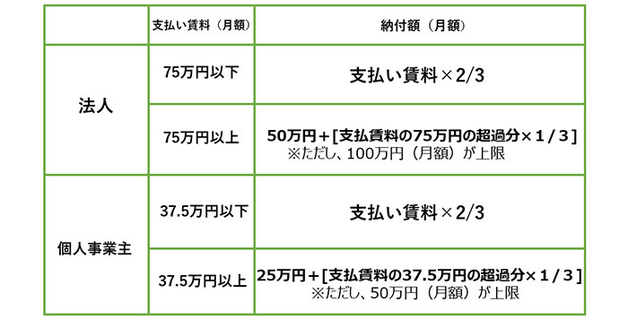 給付率1/3の上乗せ分の適用を受けた事業者は、月額の給付額上限が、法人の場合100万円、個人事業主は50万円にアップします。支払い賃料が高額な事業者や、複数店舗を持つ事業者などが対象になります。