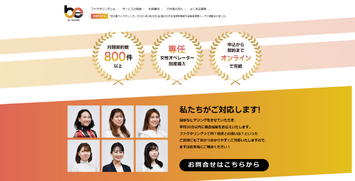 「ビートレーディング」は最短即日で資金調達可能、手数料も2%〜という低手数料で利用可能です。多くの顧客から信頼されている証拠に、月間約800件の利用者と契約を結んでいます。