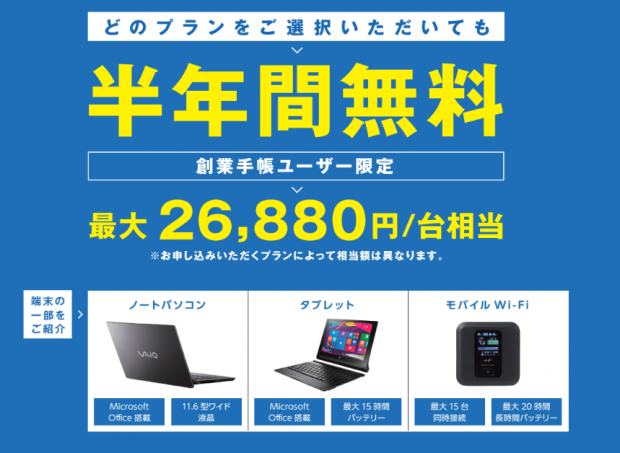 どのプランをご選択いただいても、最大26,880円/台相当が、半年間無料です。