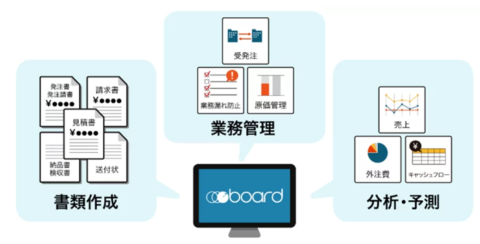在庫を持たないビジネスモデルにおすすめの販売管理システム「board」は、次のような機能により請求管理・販売管理の効率化・高度化を実現します。