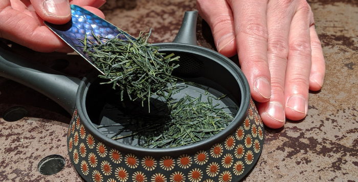 買った茶葉を自宅に持ち帰り、紅茶を淹れる要領で紅茶ポットに茶葉を入れ、熱湯を注いで飲みました。淹れ方が悪かったこともあり、とても青臭くて苦いと感じ、最初の印象はよくありませんでした。