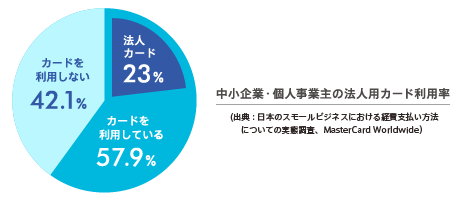 実際のところ30名以下の中小企業を対象とした調査によると、法人カードの利用率はわずか23%に留まるといいます。