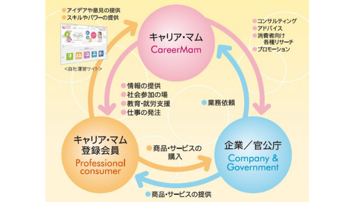 全国約10万人の主婦会員を有し、マーケティングやリサーチ、アウトソーシング、コワーキング施設の運営など、多岐に渡る事業を展開する「キャリア・マム」。