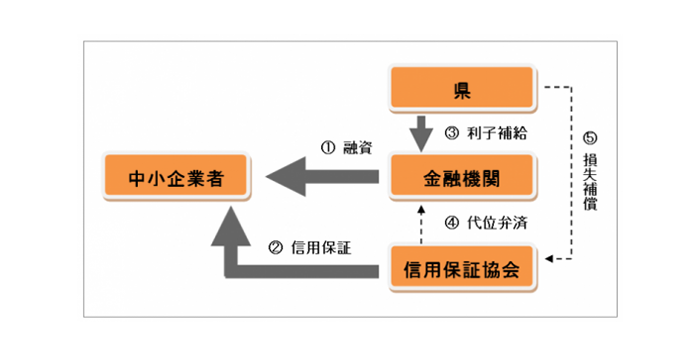 制度融資とは、自治体、地域金融機関、信用保証協会が連携して、中小企業者に資金を供給する仕組みです。多くの自治体で申込受付期間の役割を商工会等が担っています。