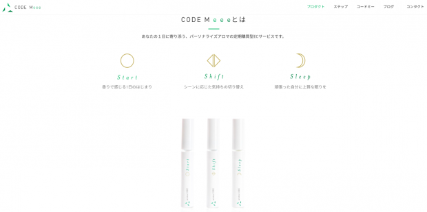一つ目は、IT型のパーソナライズアロマを提供するサービス「コードミー」です。