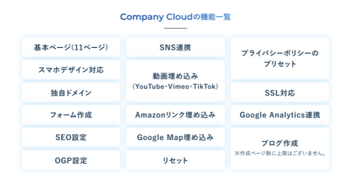 コーポレートサイトを作りたいけど、ホームページ制作会社に依頼する予算までないという方は、ノーコードで簡単にコーポレートサイトが作れる「Company Cloud」をお試しください。