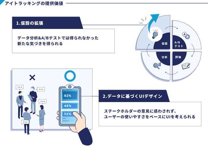 とくに力を入れていきたいのは、アイトラッキングツールによるUI・UX調査です。日本ではまだそこまで知名度が高くないのですが、学術研究などの分野ではよく使われているツールです。人間の目線を追う(トラッキングする)ことで、UI・UX改善のための示唆を導き出します。アイトラッキングツールの市場はまだまだ伸び代しかありません。