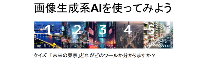 また、ChatGPT以外の画像生成AIについてもいくつかご紹介しています。実際にいくつかの画像生成AIで作った画像を並べ、クイズ形式での出題も。