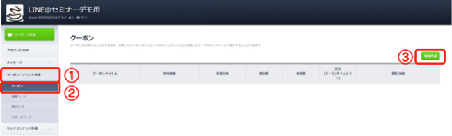 ※「クーポン抽選」は、クーポンを新規作成したあと、左のメニューバー「抽選ページ」より設定します。