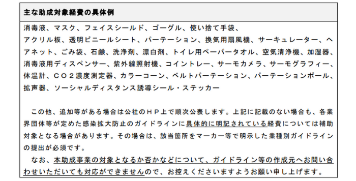本コースは、マスクや消毒液、アクリル板、空気清浄機など消耗品として助成対象経費に該当する場合に申請可能なコースです。