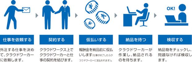 • 納品前に契約金額を支払う(仕事が完了したらクラウドワーカーに支払われる)