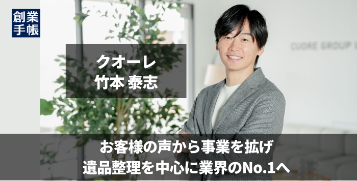 クオーレ 竹本 泰志|不用品回収から不動産事業まで。お客様の声から事業を拡げ業界No.1になった道のり