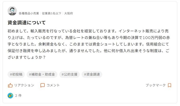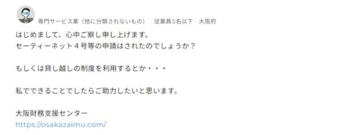 投稿には大阪財務支援センターのリンクも貼ってあるため、自力解決が難しければ専門家へ支援をあおぐこともできます。
