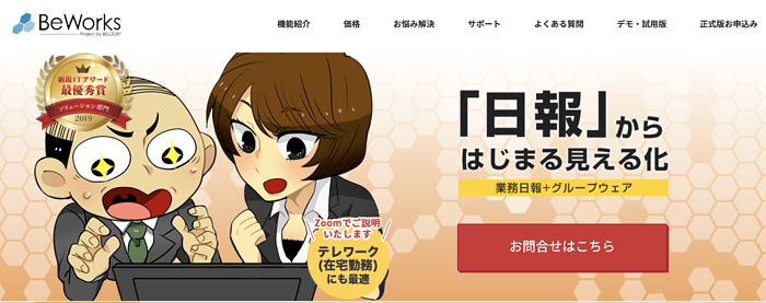 BeWorksは、日報管理と顧客管理を行える日報アプリ。日報の内容から案件の情報共有や分析を行うことができ、業務改善につなげられるツールです。