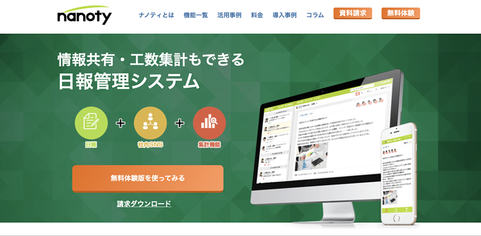 工数集計からコミュニケーション活性化まで!「nanoty(ナノティ)」