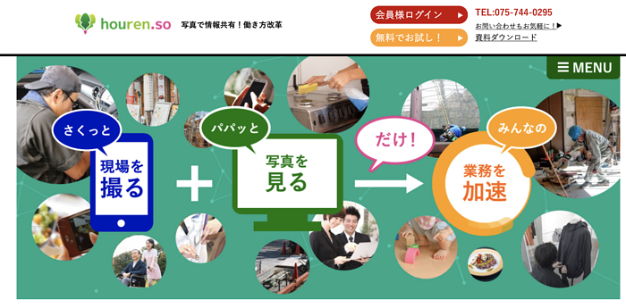 houren.soは、写真で情報共有ができる便利な日報アプリ。写真をメインとした報告を行うため、最小限の手間で日報の提出が可能です。