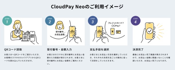 そこでおすすめしたいのが、今回紹介する「クラウドペイネオ」(CloudPay Neo)です。QRコードを生成して、顧客のスマートフォンで読み取るだけでPayPayをはじめとしたQRコード決済だけでなくクレジットカード決済まで、豊富な決済手段が利用できる決済サービスです。