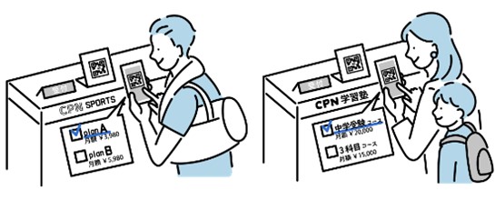 クラウドペイネオは、専用のQRコードを顧客のスマートフォンで読み込むだけで、QRコード決済やクレジットカードにて料金のお支払いが可能になります。決済専用端末が不要なため、設置スペースや持ち運びなどの心配はなく、いつでも、どこでも利用可能です。
