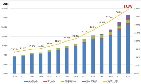 ※出典:経済産業省「2023年のキャッシュレス決済比率を算出しました」(2024年3月29日)