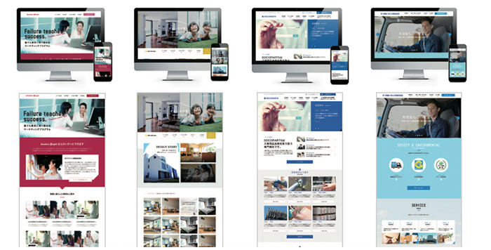 ご利用可能なテンプレートは、1,000社を超えるホームページ制作実績の中で特に効果実績の高いサイトをベースに作られたオリジナルデザイン。