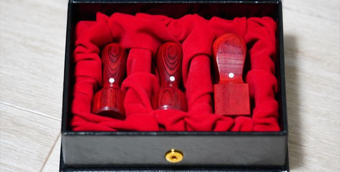 印鑑の素材には、柘(つげ)・薩摩本柘(さつまほんつげ)・彩樺(さいか)・水牛・チタンといったものがあります。
