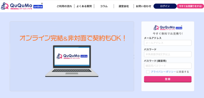 QuQuMoはファクタリング手続きの全てをオンライン、非対面で進めることができます。オフィスに訪問する手間などをかけずに現金化が可能。PCはもちろん、スマホからでも契約できる利便性の高さも特徴です。