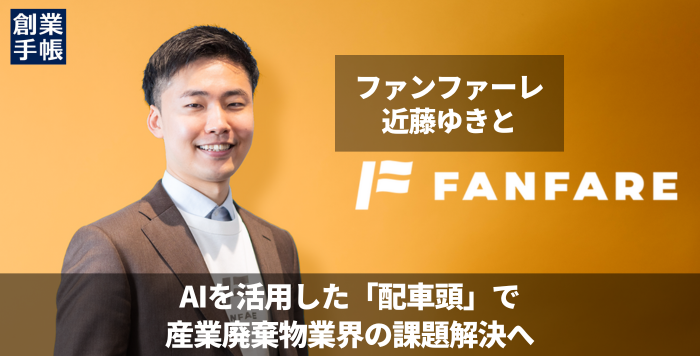 産業廃棄物業界の配車には多くの課題があります。その課題の解決にAIを活用したサービス「配車頭」で貢献しているのがファンファーレです。CEOの近藤氏に、起業の経緯やサービスの概要を聞きました。「テクノロジー活用の余地が大きい業界こそ起業のチャンス」「業界の外部から参入する利点とは」など、起業の参考になる話にも注目してください。