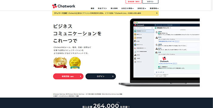 日本で広く利用されているチームチャットツールです。個人やグループチャット、タスク管理やファイル共有、ビデオ通話や音声通話も利用でき、マルチに活用できます。フリープランと有料プランがありますが、フリープランでも14グループチャットやビデオ通話、5GBのストレージ利用が可能となっていて、ポテンシャルは十分です。