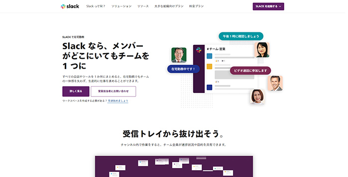 世界中でビジネスに活用されているチャットツール。打ち合わせの内容を記録・保存したり、案件に関わる全員と情報を共有したりすることもできるので、使い勝手も抜群。参加メンバーの働く場所が異なっていても、コミュニケーションが取りやすい仕様となっています。