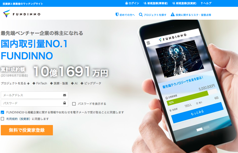 そんな思いを胸に秘め日本初の株式投資型クラウドファンディング「ファンデーノ」をスタートさせました。