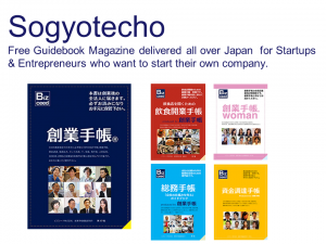 会社の母子手帳創業手帳。会社設立の1か月後に届く会社の手引書で無料で発行。創業手帳は月間15000冊、飲食版、女性版などを入れて合計3万部を毎月発行している。