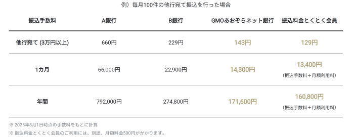 振込件数によっては「振込料金とくとく会員」を活用すればさらに手数料を削減できます。ちいきてらすのように創業期より振込件数が多い企業においては、より一層GMOあおぞらネット銀行がおすすめです。