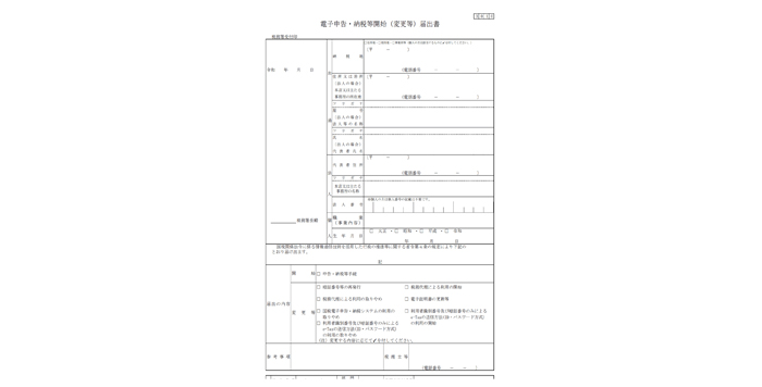 「国税ダイレクト方式電子納税依頼書兼国税ダイレクト方式電子納税届出書」に必要事項を入力して、所轄する税務署へ提出してください。届出書は書面で提出する必要があります。