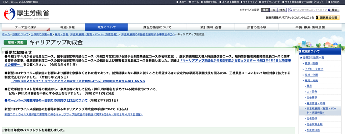 非正規雇用労働者の企業内でのキャリアアップ促進を目的とした助成金です。創業期というより設立からある程度期間が経過している企業向けですが、非正規雇用従業員の正社員化や処遇の改善を行う際におすすめです。