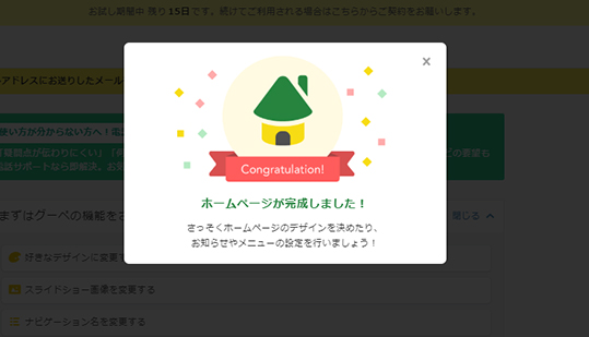 グーペは最短3分で申し込みが完了し、15日間お試しで作成・掲載を無料で行えます。