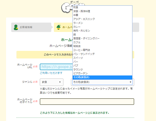 ホームページURL、ジャンル、タイトル部分は後でも変更が可能なので、仮入力と考えて気軽に選択することができるのもうれしいポイントです。