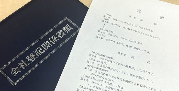 例えば、組織や体制に関する事項では、運営目的や商号、本社の所在地、発行可能の株式総数、役員などを定めることになります。