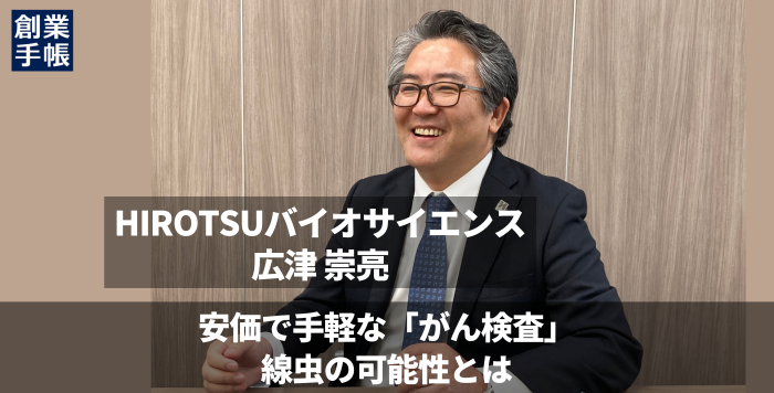 今回は、優れた嗅覚を持つ線虫(せんちゅう)を活用することで、発見が難しい早期がんのリスクも判定できる検査を開発した広津さんに、創業手帳・編集部がインタビューしました。